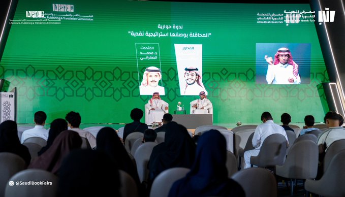 شهد معرض المدينة المنورة للكتاب 2025، في ختام فعالياته، ندوة حوارية مميزة أثارت نقاشًا فكريًا معمقًا، حملت عنوان “المُحاقلة بوصفها استراتيجية نقدية“. وقد أدار الندوة الأستاذ سعود المقحم، مستضيفًا فيها قامة أكاديمية بارزة في مجال اللغة العربية، هو الدكتور محمد الصفراني، أستاذ اللغة العربية وآدابها في جامعة طيبة .